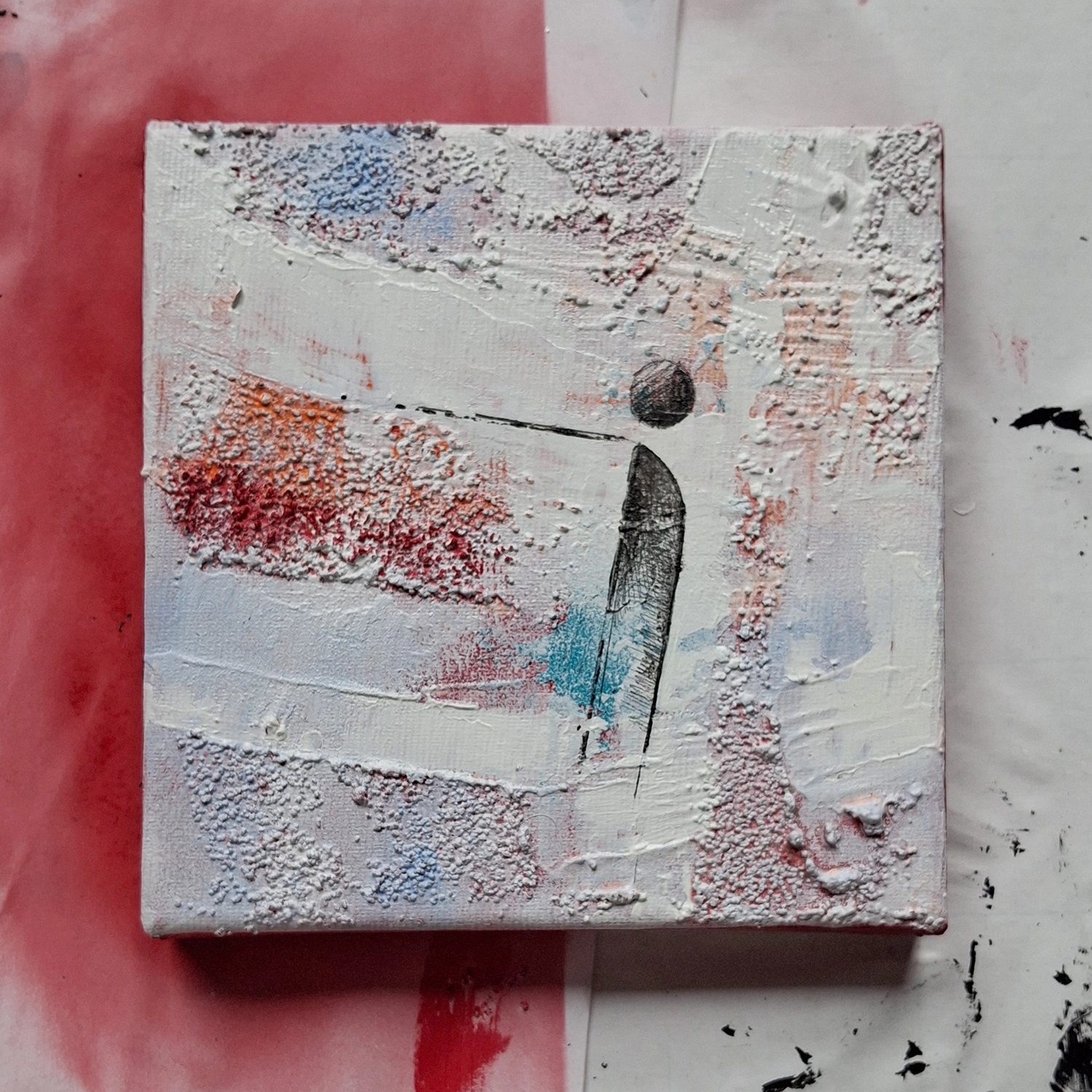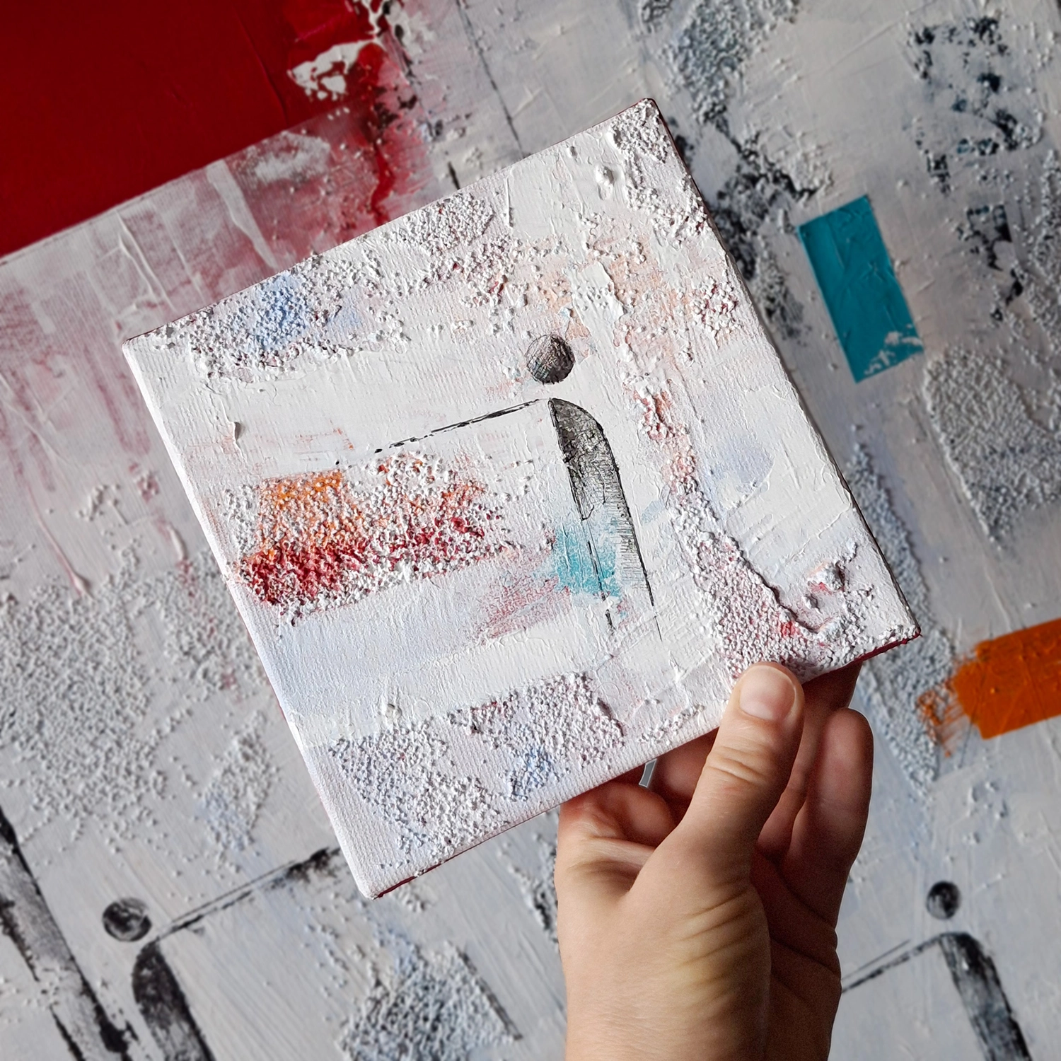 W swojej twórczości odwołuję się do zasad abstrakcji geometrycznej oraz abstrakcji kolorystycznej, czerpiąc inspiracje z harmonii kształtów i kontrastów barw. Geometryczne kompozycje i dynamiczne akcenty kolorystyczne pozwalają mi tworzyć dzieła, które równocześnie przyciągają wzrok i pobudzają do refleksji. W tym obrazie połączyłam intensywne kolory i głęboką biel, tworząc kompozycję pełną dynamiki i emocji.