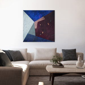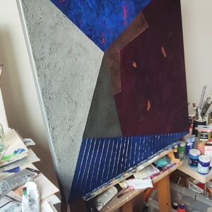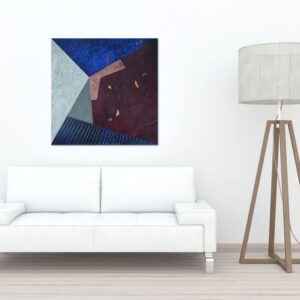 Konstrukcja moich obrazów opiera się na matematycznym podziale płaszczyzny i modułowym podejściu, co nadaje im unikalną strukturę i głębię. W swoich pracach eksploruję temat samotności w systemie rzeczywistego świata, próbując jednocześnie polemizować z jego zasadami. Sterylne, precyzyjnie skrojone płaszczyzny podkreślają te poszukiwania, dodając moim dziełom intelektualnego wymiaru.