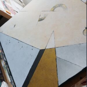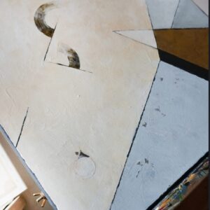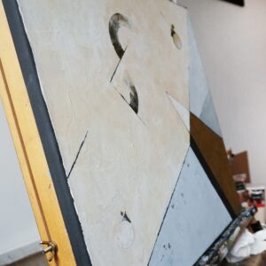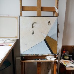 Konstrukcja moich obrazów opiera się na matematycznym podziale płaszczyzny i modułowym podejściu, co nadaje im unikalną strukturę i głębię. W swoich pracach eksploruję temat samotności w systemie rzeczywistego świata, próbując jednocześnie polemizować z jego zasadami. Sterylne, precyzyjnie skrojone płaszczyzny podkreślają te poszukiwania, dodając moim dziełom intelektualnego wymiaru.